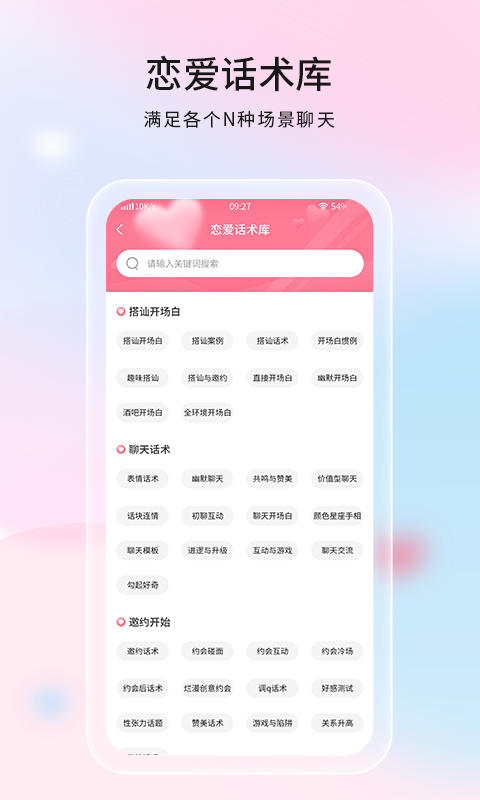 戀愛話術(shù)、情景解讀,只要搜一搜,輸入你想找的聊天內(nèi)容,只要直接復(fù)制粘貼就能把妹子追到手。