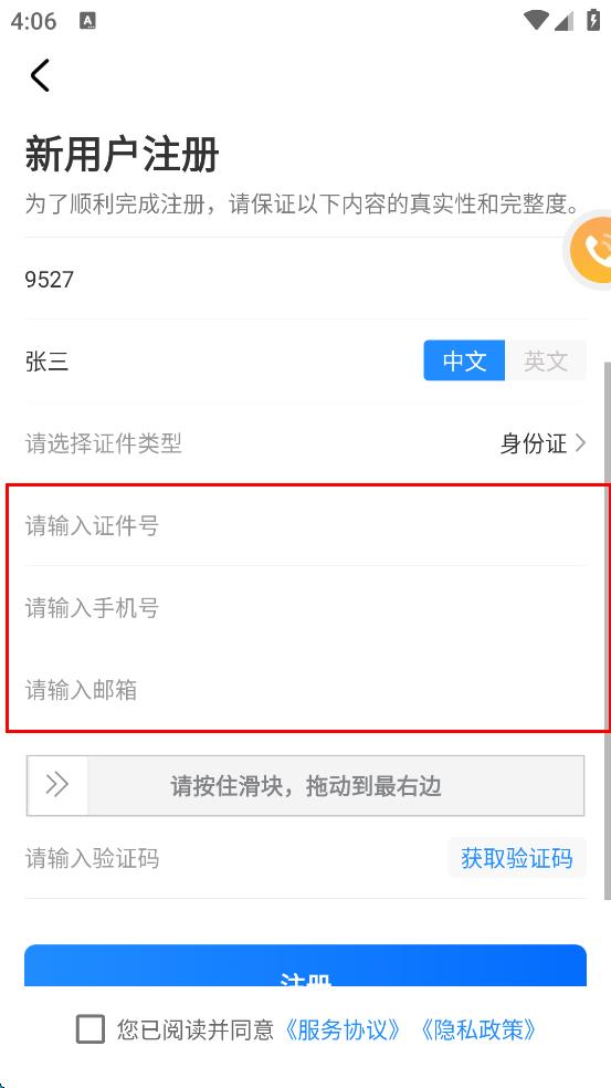3、選擇證件類型,輸入證件號(hào)、手機(jī)號(hào)、郵箱等內(nèi)容。