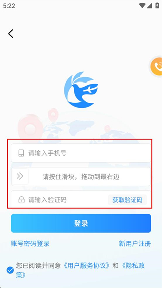 3、在請輸入手機(jī)號(hào)的輸入框內(nèi)填寫對應(yīng)號(hào)碼,按住滑塊拖動(dòng)到最右邊完成驗(yàn)證,再獲取并填寫驗(yàn)證碼。