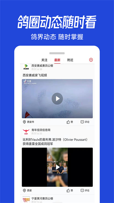 青鴿網(wǎng)最新版是一款專門為喜歡鴿子的人準(zhǔn)備的平臺(tái)。用戶可以在平臺(tái)上找到最新的信鴿比賽信息以及各種鴿子的養(yǎng)殖資訊,還可以在平臺(tái)上發(fā)布自己的需求,找到各個(gè)供應(yīng)商購(gòu)買鴿子,參與比賽讓自己的信鴿展現(xiàn)風(fēng)采。