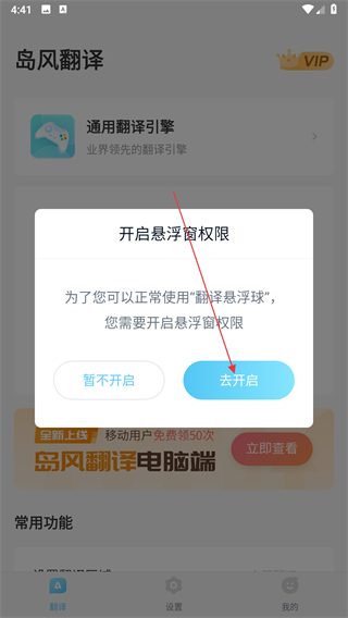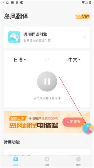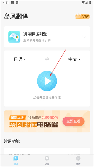 1、打開島風(fēng)翻譯應(yīng)用,點擊點擊開啟翻譯懸浮球按鈕。