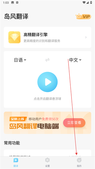 1、打開島風(fēng)翻譯APP,點擊我的。