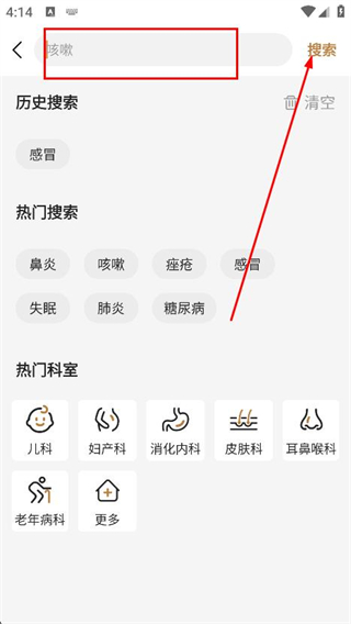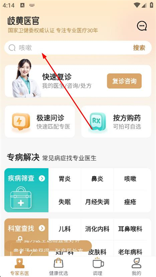 2、在專家名醫(yī)頁面,點擊頂部搜索框,進入搜索頁面。