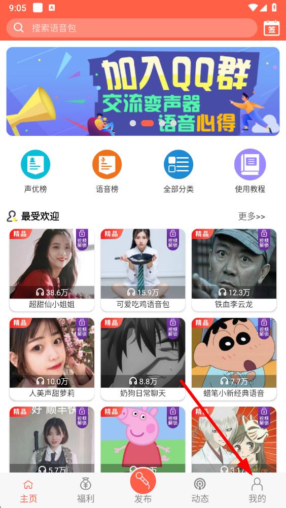 1、打開變聲器語音包app,點(diǎn)擊底部導(dǎo)航欄中的我的進(jìn)入個(gè)人相關(guān)頁(yè)面。