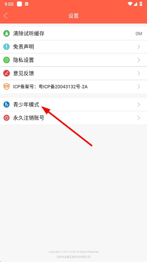 3、進(jìn)入設(shè)置頁(yè)面后,下滑找到青少年模式選項(xiàng)并點(diǎn)擊進(jìn)入其設(shè)置界面。
