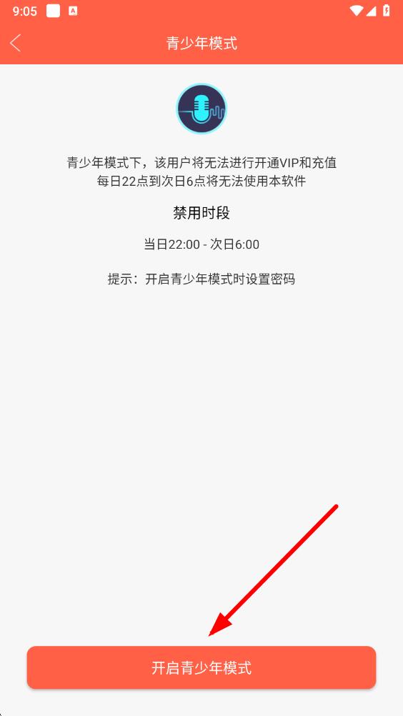 4、在青少年模式設(shè)置界面,點(diǎn)擊開啟青少年模式,按照提示設(shè)置密碼后即可成功開啟。