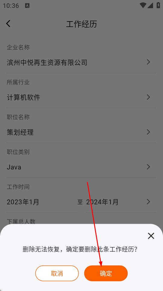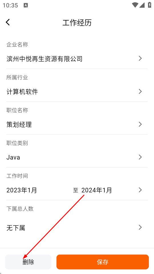 4、在工作經(jīng)歷編輯頁面,點(diǎn)擊下方的刪除按鈕。