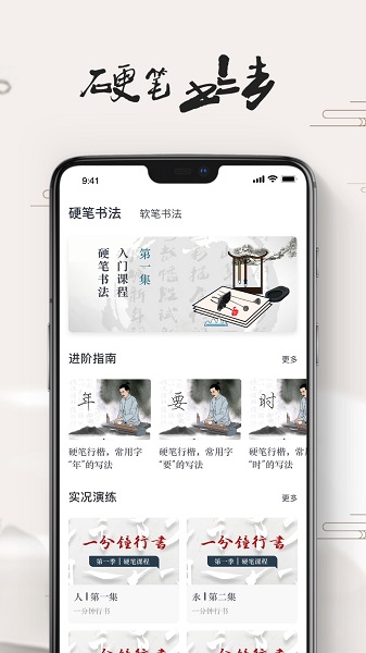 3、教程推送,提供專業(yè)書法教程,并且進(jìn)行了教程分類,利于教程選擇;