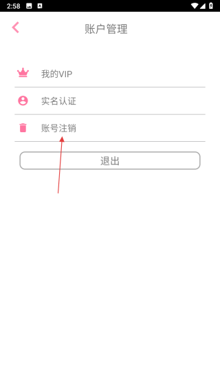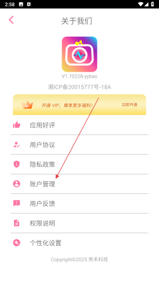 3、在關于我們界面里,點擊賬戶管理選項,進入賬戶管理頁面。