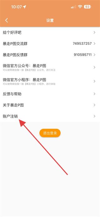 3、在設(shè)置頁面,點擊賬戶注銷選項。