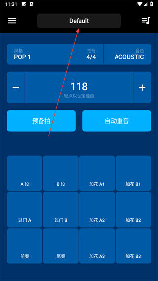1、打開BeatStation應(yīng)用,點擊頂部的Default區(qū)域。