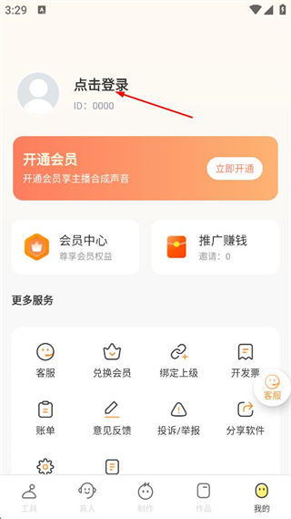 2、在“我的”頁面,點(diǎn)擊“點(diǎn)擊登錄”區(qū)域。