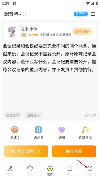 1、打開配音鴨APP,點(diǎn)擊底部“我的”選項(xiàng)。