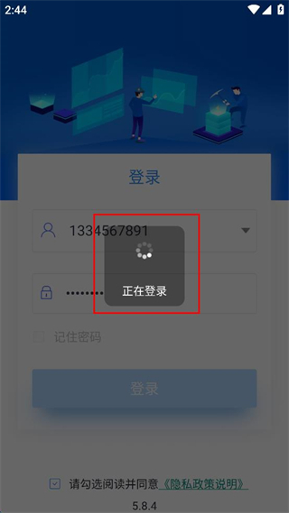 4、確認(rèn)信息無誤后點擊登錄按鈕,等待系統(tǒng)驗證后完成登錄。