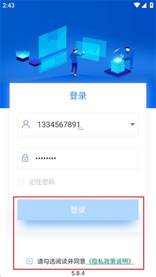 3、完成密碼輸入后,找到隱私政策勾選框,點擊勾選確認(rèn)同意。