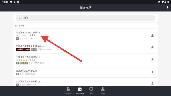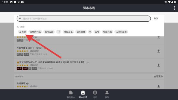 2、用戶可以在熱門搜索內(nèi)進(jìn)行篩選心儀的模板如三角洲等腳本,也可以自行搜索,點(diǎn)擊下載按鈕完成獲取。