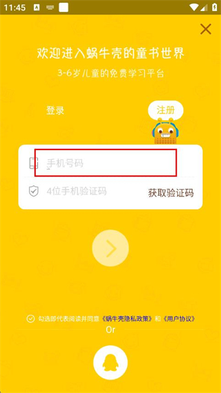 3、在注冊頁面的輸入框中,填寫需要注冊的手機號碼。