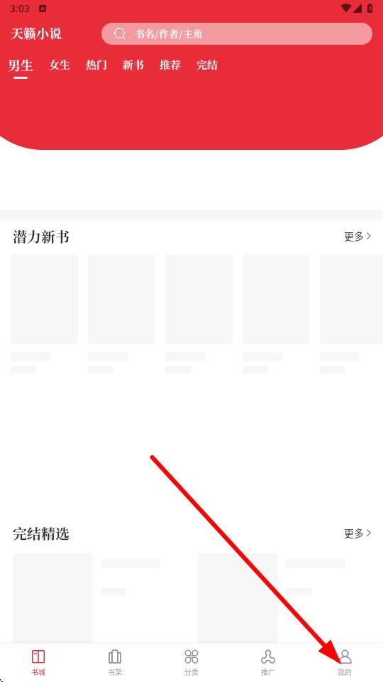 1、打開天籟小說app,點擊底部導(dǎo)航欄我的。