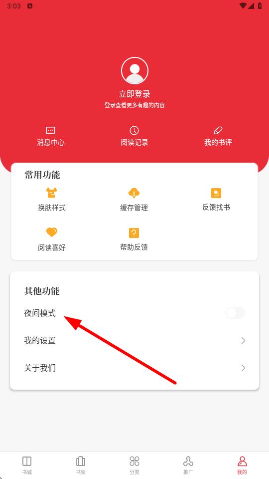 2、在我的頁面,找到其他功能板塊,點擊夜間模式。