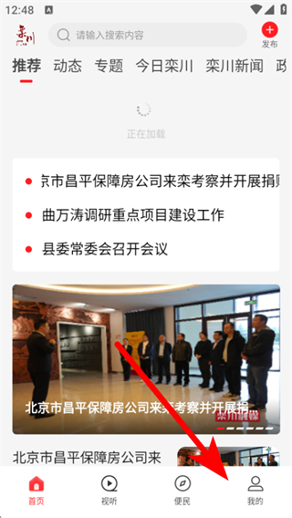 1、打開云上欒川app,在首頁點擊我的,進入個人的頁面。