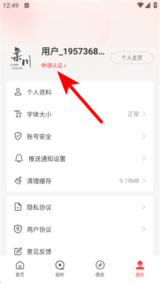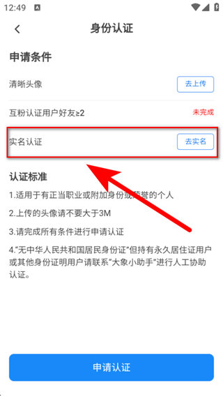 2、在個人的頁面需要點擊申請認證,進入大象認證的界面。