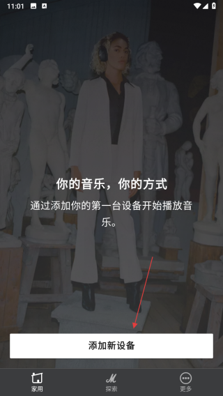 1、打開Marshall藍(lán)牙應(yīng)用,在主界面點(diǎn)擊添加新設(shè)備按鈕。