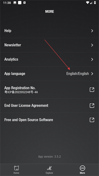 2、在More頁面,點(diǎn)擊App language選項(xiàng)。