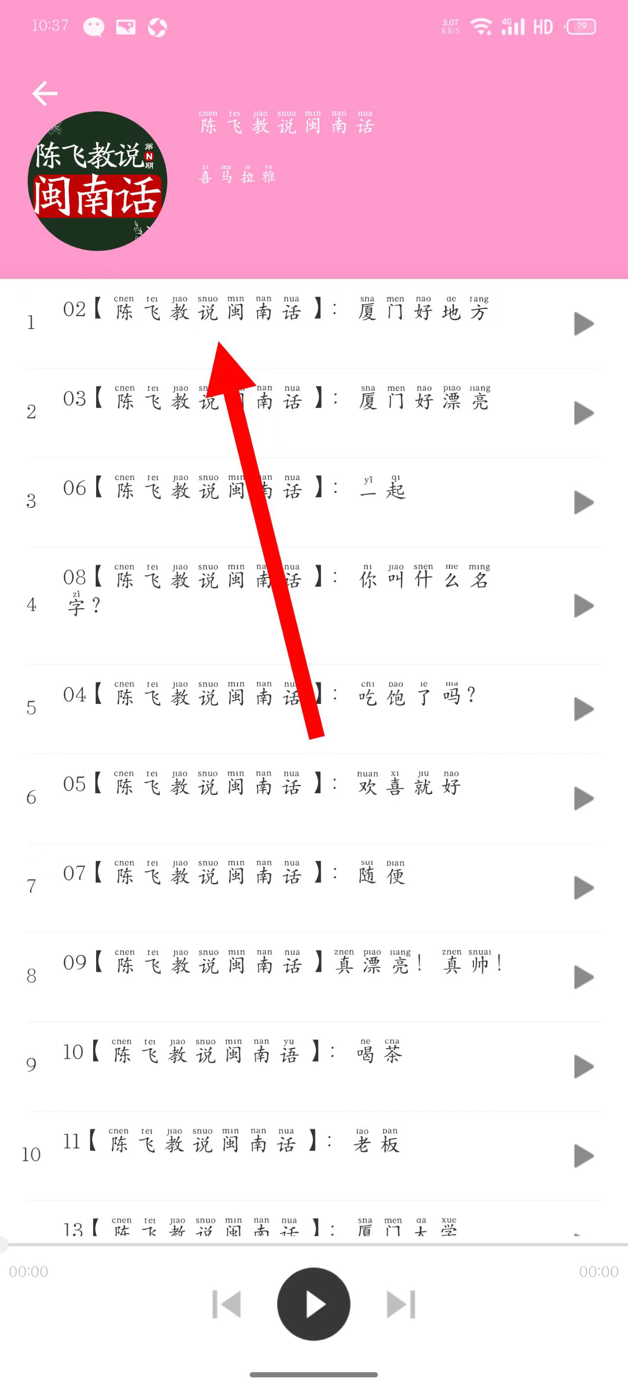 3、在閩方言內(nèi)容頁面,選擇如陳飛教說閩南話這類課程,點(diǎn)擊進(jìn)入課程詳情頁。