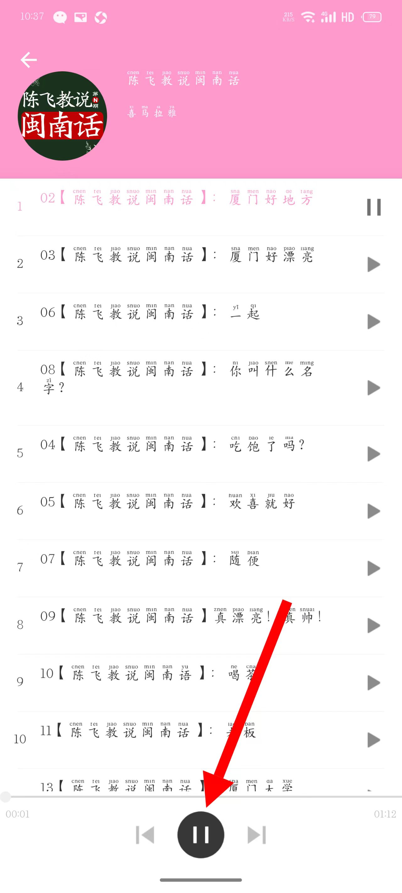5、即可播放對(duì)應(yīng)的方言內(nèi)容,若需暫停,點(diǎn)擊頁面底部的暫停按鈕即可。