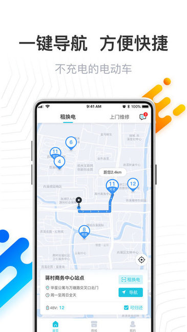 騎幻出行app用戶端是電動車用戶專屬的智能換電出行平臺,操作簡潔直觀且實用性拉滿,支持定位查找周邊換電站點,一鍵掃碼即可快速換電,實時顯示電池電量,徹底告別續(xù)航焦慮,搭配導航指引、上門維修等便利服務(wù),輕松解決短途出行難題,無需復雜操作,讓出行更高效省心,需要的用戶快來下載體驗。