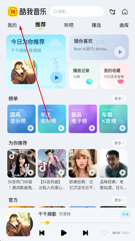 1、推薦:軟件在這個功能里面為用戶推薦了大量的各種榜單上面的歌曲,包含了抖音熱歌版以及酷我飆升榜等;