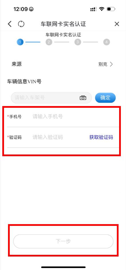 4、在新頁(yè)面中,依次輸入車輛信息VIN號(hào),填寫手機(jī)號(hào)并點(diǎn)擊獲取驗(yàn)證碼,輸入收到的驗(yàn)證碼后,點(diǎn)擊下一步,按照后續(xù)提示完成實(shí)名認(rèn)證操作。