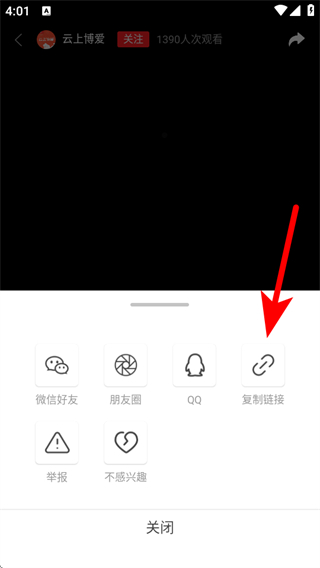 4、在分享選項(xiàng)菜單中,點(diǎn)擊復(fù)制鏈接,完成鏈接分享的操作。