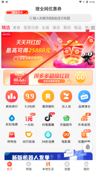 2、在搜全網(wǎng)優(yōu)惠券頁面,點(diǎn)擊右上角的分類圖標(biāo),展開分類導(dǎo)航欄,查看各類優(yōu)惠商品分類,便于篩選所需商品。