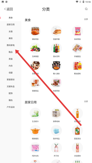 3、進(jìn)入分類頁面后,在左側(cè)導(dǎo)航欄找到數(shù)碼家電分類選項(xiàng),點(diǎn)擊該選項(xiàng),即可瀏覽數(shù)碼家電類的優(yōu)惠商品信息。