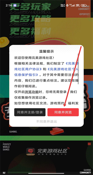 1、點擊“溫馨提示”彈窗的“同意并瀏覽”,進入APP主界面。