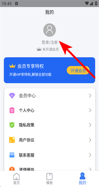 2、在個人頁面,點擊登錄/注冊,進入賬號注冊選擇界面。
