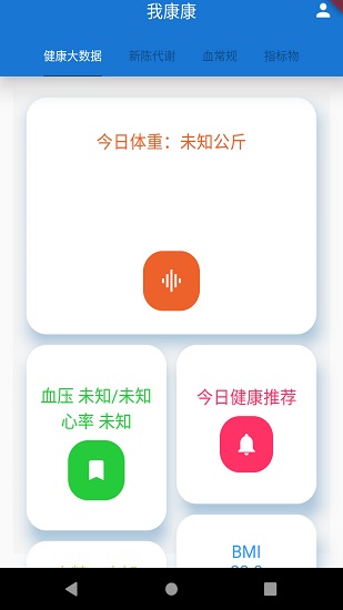 我康康app為變幻膠囊公司設(shè)計(jì)和開發(fā)的個(gè)人電子病歷與健康管理應(yīng)用。目前為安卓1.0版本。其記錄個(gè)人用戶的體重、血壓、血糖、血常規(guī)、大生化、腫瘤標(biāo)記物等相關(guān)指標(biāo),并進(jìn)行歷史數(shù)據(jù)的圖形化分析以及指標(biāo)分析。本應(yīng)用核心用戶是亞健康人群,即存在血脂高、糖尿病前期、尿酸高、血壓較高等健康問題的人群。