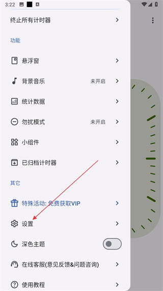 1、打開計時器app,點擊左上角的三條橫線圖標,展開側(cè)邊欄菜單。