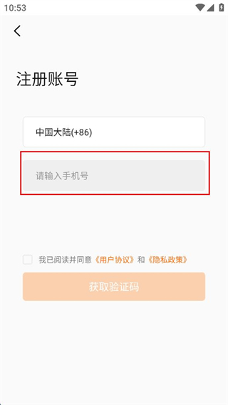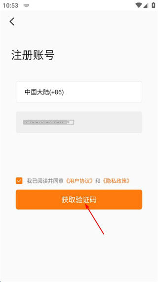2、輸入手機號,勾選我已閱讀并同意用戶協(xié)議和隱私政策,點擊獲取驗證碼。