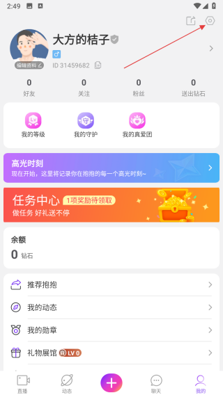 2、在個人頁面中,點擊右上角的設置圖標,進入設置界面。
