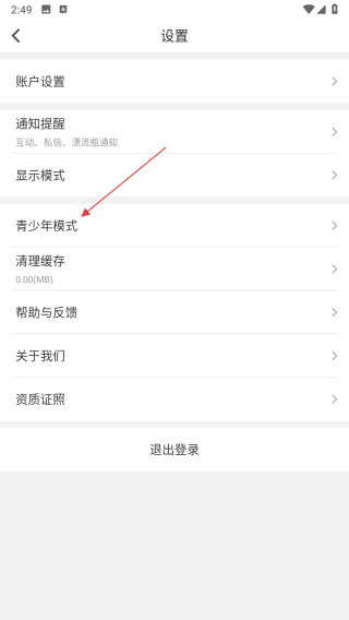 3、在設置界面里,找到青少年模式選項并點擊,進入青少年保護模式介紹頁面。