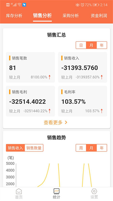 3、在銷售分析頁面,即可了解銷售的數(shù)據(jù),還能查看銷售趨勢(shì)圖