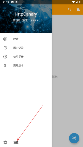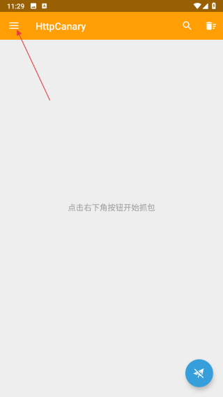 1、打開HttpCanary應(yīng)用,點擊界面左上角的三條橫線菜單按鈕,展開側(cè)邊欄菜單。
