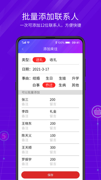 1、【共享資源記賬】能夠和家人共享人情世故賬數(shù)據(jù)信息,都能隨時(shí)隨地查帳記賬,保證誰(shuí)隨份子誰(shuí)記賬,親人的數(shù)據(jù)信息自動(dòng)更新。;