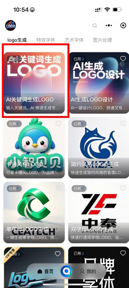 1、打開相關(guān)logo生成應(yīng)用,在首頁點擊logo生成里面的關(guān)鍵詞生成選項。
