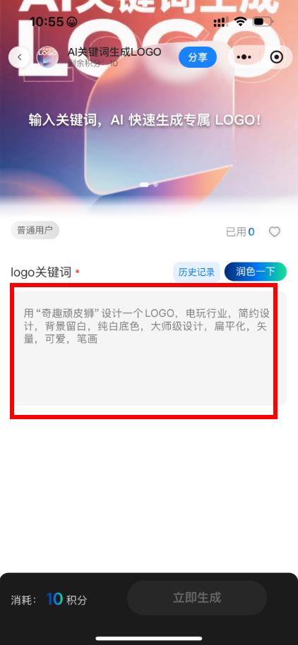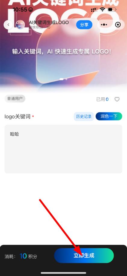 3、輸入完成后,點擊立即生成按鈕,等待AI生成專屬logo。