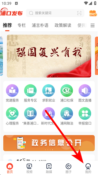 1、打開浦口發(fā)布APP,點擊底部導航欄的我的,進入個人頁面。