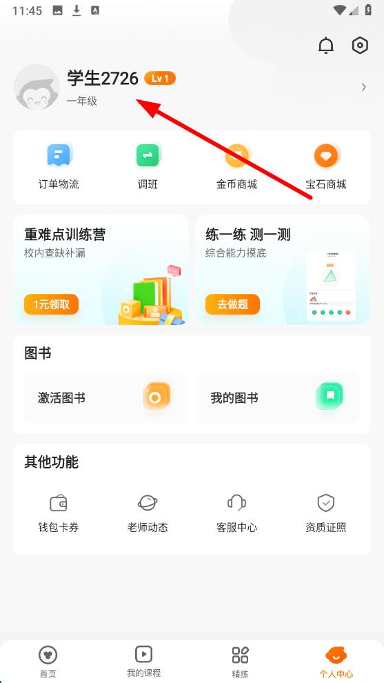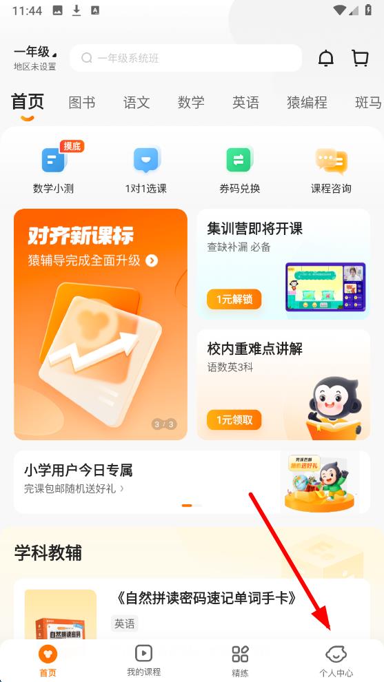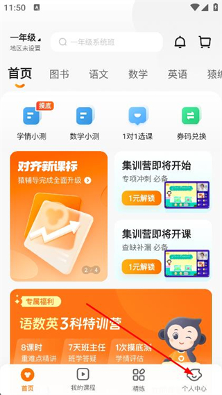 1、打開猿輔導(dǎo)應(yīng)用,點擊底部導(dǎo)航欄中的個人中心選項,進入個人中心頁面。