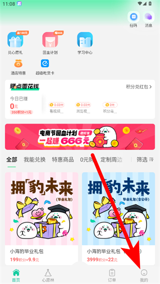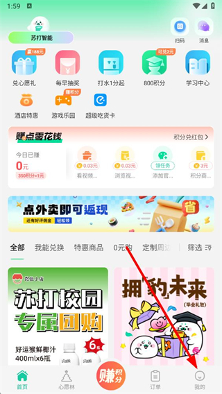 1、打開蘇打校園app,點擊底部導航欄中的我的選項。